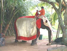 Im Garten wartete bereits unser Glückselefant, mit dem wir nach der Zeremonie ins Eheglück geritten sind.
