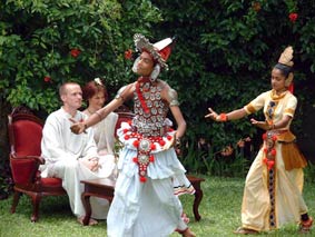 Danach erhielten wir einen leckeren Cocktail und konnten uns kurz auf einem Sofa ausruhen. Während wir unseren Cocktail tranken, tanzten für uns die Kandy-Tänzer.